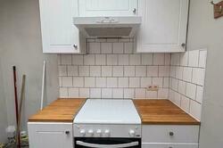 REZ : salon, salle à manger petite cuisine meublée avec cuisinière, salle de bains avec wc.